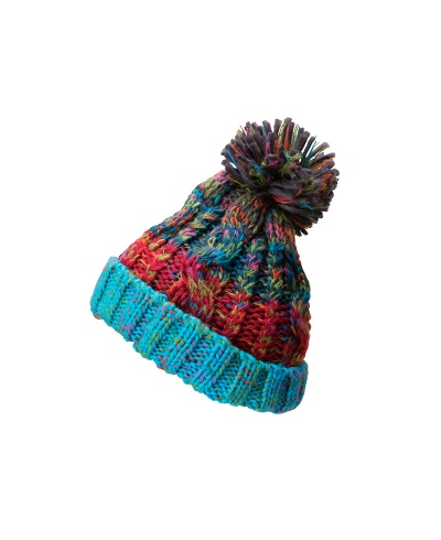 Mehrfarbige Mütze mit Umschlag und Pompon