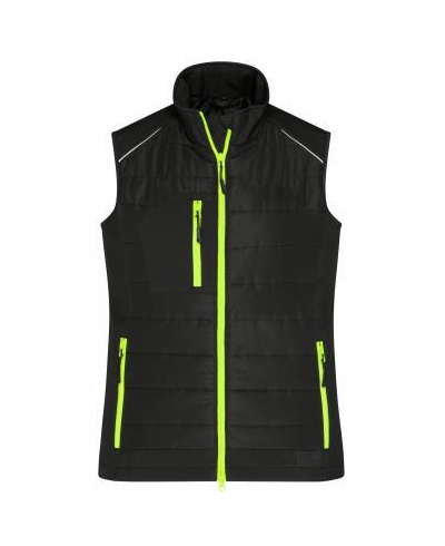 Pflegeleichtes 2-Lagen Softshellmaterial kombiniert mit gesteppen Einsätzen im Vorder- und Rückenteil