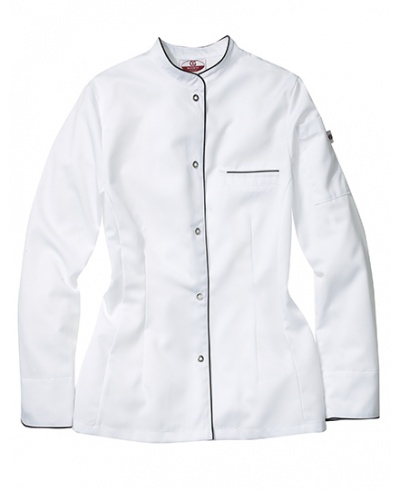 Taillierte Kochjacke, modisch geschnitten mit Stehkragen und abgesetzten Paspeln, aus hautfreundlichem Lyocell. Weich fließende Qualität. Hohe Feuchtigkeitsaufnahme und schnelle Trocknung sorgen für ein ideales Körperklima. Für optimale Hygiene bei 95° C waschbar.