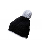 Pompon Hat with Contrast Stripe mb7964-black-lightgrey
