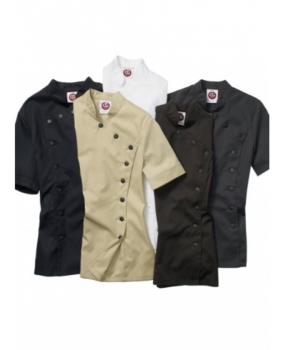 Taillierte Tunika mit Kurzarm und Stehkragen. Besonders schön ist das schräg geschnittene Revers, das mit Knöpfen geschlossen wird. Die Tunika hat seitliche Schlitze und eine Rückenfalte für mehr Bewegungsfreiheit. Das hochwertige Stretchgewebe ist sehr bequem und leicht zu pflegen. Selbst bei Waschtemperaturen von 95° C bleiben Form, Farbe und Tragekomfort voll erhalten.