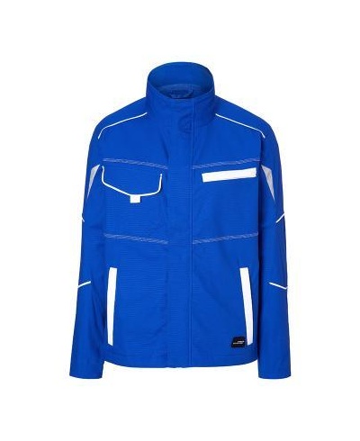 Elastische, leichte Canvas-Qualität, Perfekte, bequeme Passform durch Elasthananteil und ergonomische Schnittführung, Stehkragen innen mit weichem Fleece, Ergonomisch geformte Ärmel, Durchgehend unterlegter Reißverschluss mit Windschutzblende und Kinnschutz, Innenliegende Armbündchen, Seitentaschen, Brusttasche und Innentasche mit Reißverschluss, Brusttasche mit Klappe und Klettverschluss, Handytasche innen, Reflexelemente am Ärmel und im Rückenteil, 60° waschbar, trocknergeeignet, Knöpfe und Reißverschlüsse: Um Beschädigungen am zu bearbeitenden Produkt zu vermeiden, sind alle Knöpfe und Reißverschlüsse verdeckt verarbeitet.