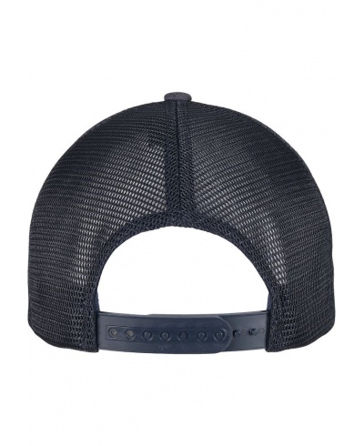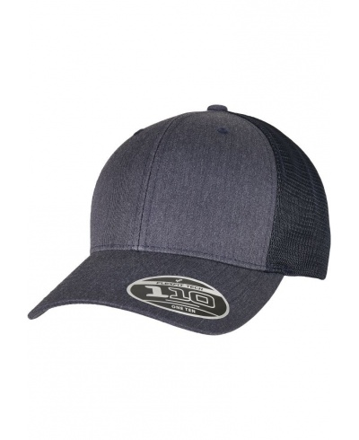 An easy-going trucker cap that focuses on the essential: style! The front panels of the cap are made of a mottled cotton-polyester mix, the back of transparent and robust mesh. For individual adjustment a snapback closure on the back stands ready. The pre-bent visor also shows elaborate decorative stitching.