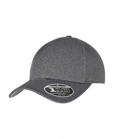 The masculine cap is a flexible allrounder in form, color and function. It enters the fashion stage mottled and with an undervisor in contrasting color. The visor itself is pre-curved and eightfold quilted. An eye-catcher is the seamless front panel. Tried-and-tested Flexfit 110 technology and a handy Velcro fastener offer an optimum fit. The 110 Melange Unipanel cap – a street accessory that always fits.