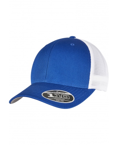 This trucker cap offers a time-proven, dual design: its front is made from cotton, the back from transparent, white polyester mesh. Thanks to the smart, integrated technology the cap guarantees optimal wearing comfort: next to the Flexfit ribbon a color-matched snapback closure stands ready for individual size adjustment. The trucker cap style is rounded off by a pre-bent visor with eight decorative seams.