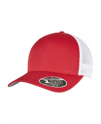 This trucker cap offers a time-proven, dual design: its front is made from cotton, the back from transparent, white polyester mesh. Thanks to the smart, integrated technology the cap guarantees optimal wearing comfort: next to the Flexfit ribbon a color-matched snapback closure stands ready for individual size adjustment. The trucker cap style is rounded off by a pre-bent visor with eight decorative seams.