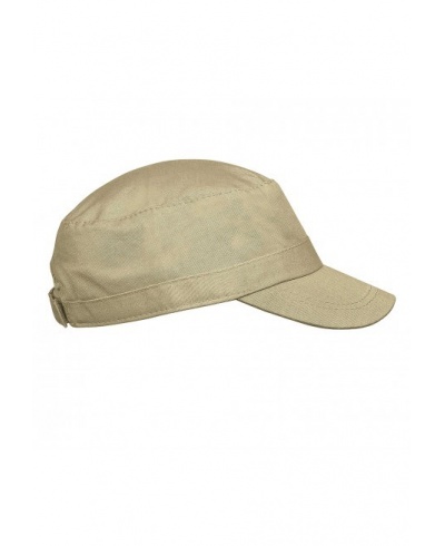 100 % Washed-out Cotton. Military 3 panel cap. Size adjuster with metal buckle.
