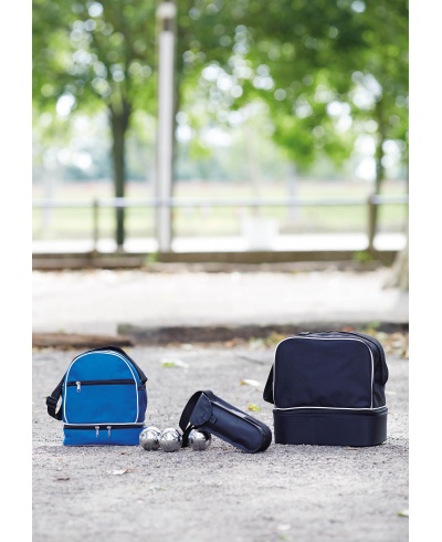 Petanque bowl holder in tarpaulin, space for 3 bowls, buckle closure, adjustable shoulder belt.
