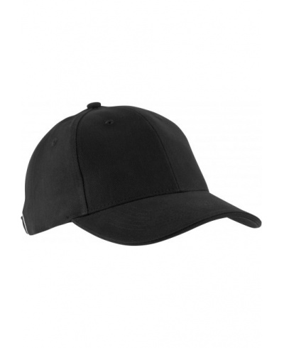 100 % heavy brushed cotton Twill. Contrast sandwich peak. Size adjuster with metal buckle and grommet.
