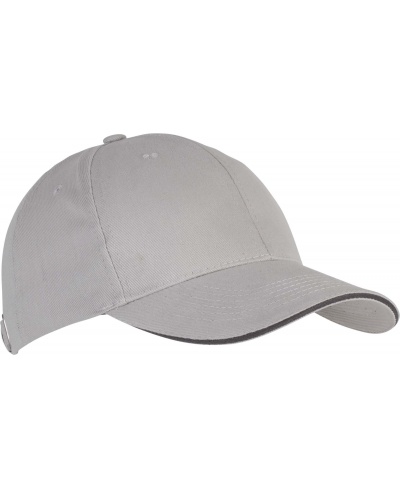 100 % heavy brushed cotton Twill. Contrast sandwich peak. Size adjuster with metal buckle and grommet.