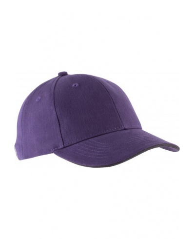 100 % heavy brushed cotton Twill. Contrast sandwich peak. Size adjuster with metal buckle and grommet.