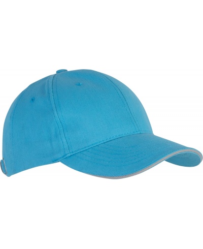 100 % heavy brushed cotton Twill. Contrast sandwich peak. Size adjuster with metal buckle and grommet.