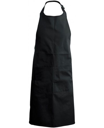 65% polyester / 35% cotton. Industrial laundry 85°C. Domestic wash 60°C. Self fabric neck tie with adjustable buckle. Large double pocket : Length 20 cm - Width 31.5 cm. Apron : Length 90 cm - Width 76 cm.