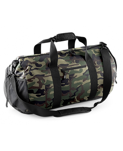 Capacity: 58 litres; TearAway label for ease of rebranding | Water resistant fabric, external mesh ball pocket, shoe tunnel/ wet pocket, authentic metal ventilation eyelets, zippered front valuables pocket, zippered end pocket, external mesh pocket, detachable adjustable shoulder strap with pad, haul handle, padded hand grip