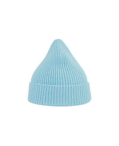 Fine rib-knitted beanie with regular cuff and fully fashioned top. Made of 50% recycled polyester and 50% acrylic. Single knitting to hold its shape well.