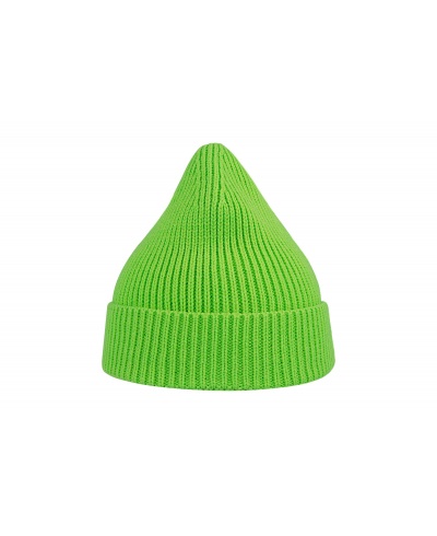 Fine rib-knitted beanie with regular cuff and fully fashioned top. Made of 50% recycled polyester and 50% acrylic. Single knitting to hold its shape well.