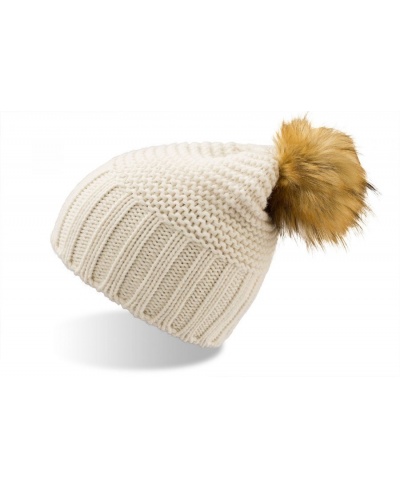 Soft and elegant cap with eco-friendly fur pompom, with MADE IN ITALY yarn in mixed wool.