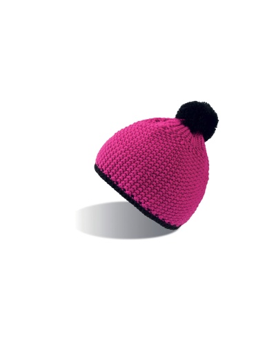 Soft acrylic beanie with warm fleece lining, in ontrasting fashion colors.