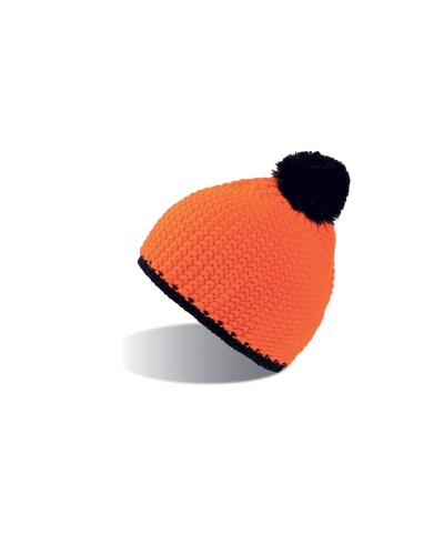Soft acrylic beanie with warm fleece lining, in ontrasting fashion colors.