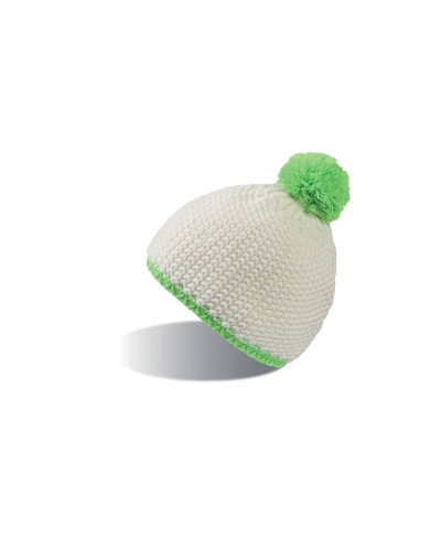 Soft acrylic beanie with warm fleece lining, in ontrasting fashion colors.