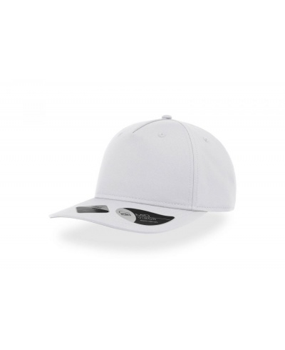 Structured 5-panel hat made of recycled polyester with UV protection and water-repellent finish. Medium peak, dry sweatband and rubber Velcro closure. Suitable for sunny and rainy weather.