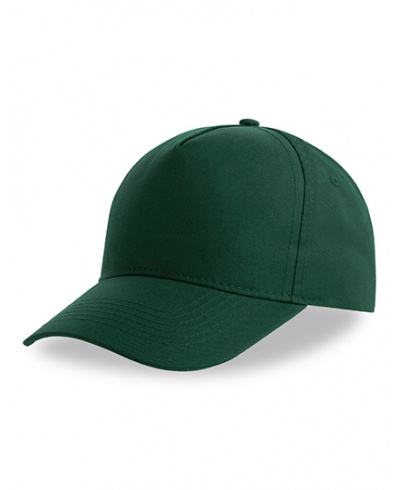 Classic structured five-panel cap made from 100% certified recycled polyester. Full stitching, curved peak and 4 eyelets.