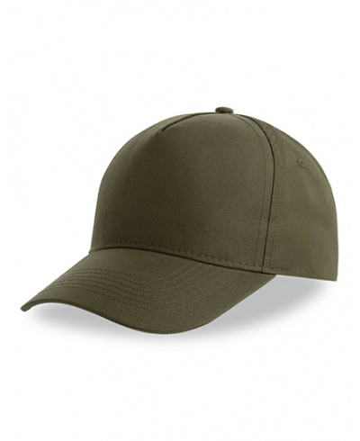 Classic structured five-panel cap made from 100% certified recycled polyester. Full stitching, curved peak and 4 eyelets.