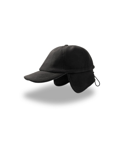 Polar fleece cap with folding earflaps, closure: adjustable drawstring and stopper.