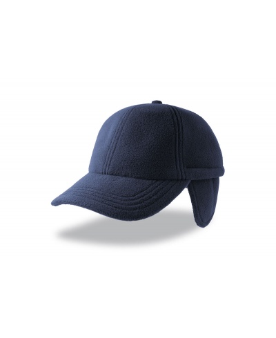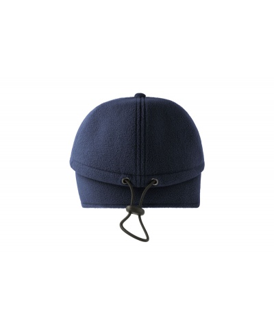 Outdoor winter hat with ear flaps made of recycled polar fleece. Unstructured front panels and curved visor. Adjustable closure with elastic cords and stopper.