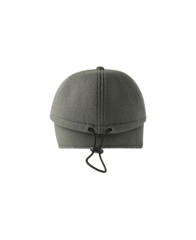 Outdoor winter hat with ear flaps made of recycled polar fleece. Unstructured front panels and curved visor. Adjustable closure with elastic cords and stopper.