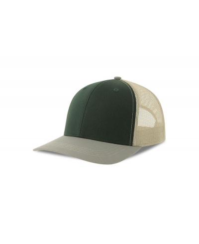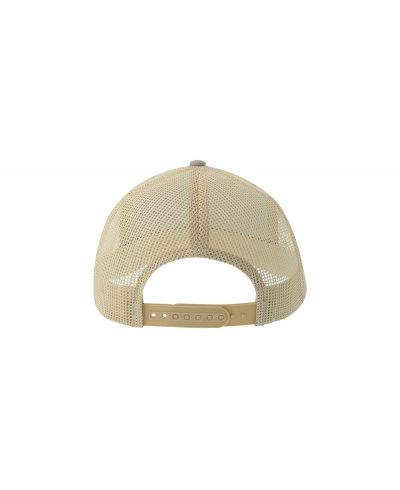 Colorful trucker style with 6-panel structure. Made from a blend of recycled and organic cotton, it has a mid-rise peak and a recycled snapback closure. A breathable recycled polyester mesh fabric completes the garment.