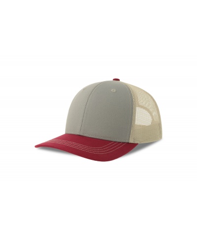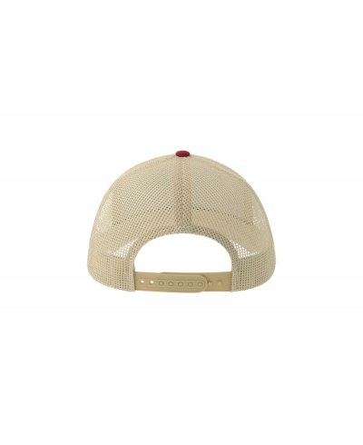 Colorful trucker style with 6-panel structure. Made from a blend of recycled and organic cotton, it has a mid-rise peak and a recycled snapback closure. A breathable recycled polyester mesh fabric completes the garment.