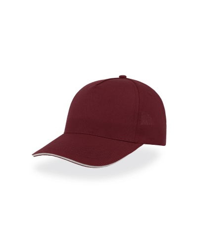 5-panel cap made of 100% lightweight cotton with a contrasting sandwich on the peak, suitable for all events and the promotional world. Velcro closure at the back.