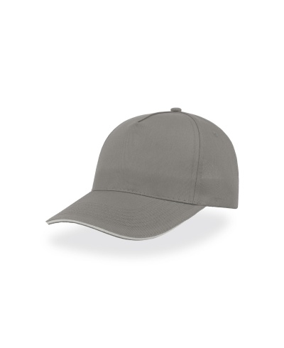 5-panel cap made of 100% lightweight cotton with a contrasting sandwich on the peak, suitable for all events and the promotional world. Velcro closure at the back.
