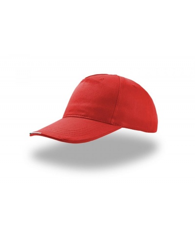 The 5 panels cap in 100% light cotton, with contrasting piping on visor with the Italian flag colours , suitable for any events and promotional world. Back hook-and-loop closure.