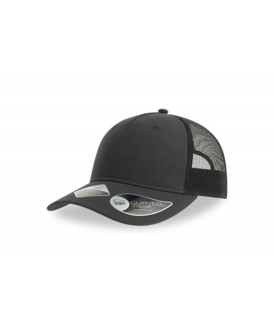 Classic 5 panel trucker cap in recycled polyester twill. Recycled mesh and snapback closure. Wide crown for embroideries and patches. Light and breathable shape for everyday use.