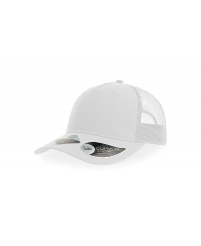 Classic 5 panel trucker cap in recycled polyester twill. Recycled mesh and snapback closure. Wide crown for embroideries and patches. Light and breathable shape for everyday use.