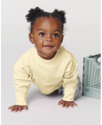 Material: 85% Organic ring-spun combed cotton , 15% Recycled polyester; Set-in sleeve, 1x1 rib at neck collar, sleeve hem and bottom hem, shoulder placket with 1 snap in matching body colour and 1 hidden snap for easy dressing, inside back neck tape in single jersey, self fabric half moon at back neck, single needle topstitch at neck collar, sleeve hem and bottom hem with twin needle topstitch; Certificates: GOTS - Global organic textile standard, Fair wear, STANDARD 100 by OEKO-TEX®, Peta - Approved VEGAN