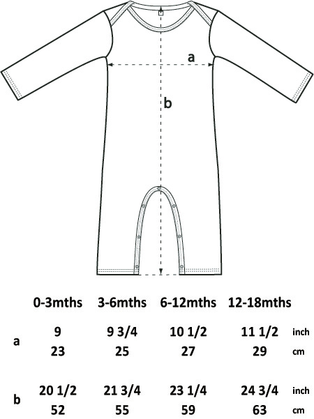 | Extra size: | 0-3, 3-6, 6-12, 12-18 months |