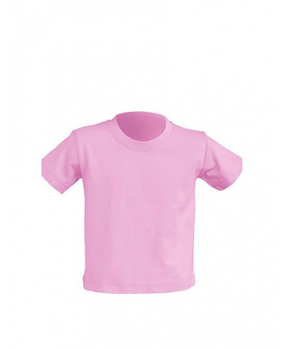 Babies short sleeve T-shirt. Lycra rib neck. Side seams on body. Shoulder to shoulder tape.