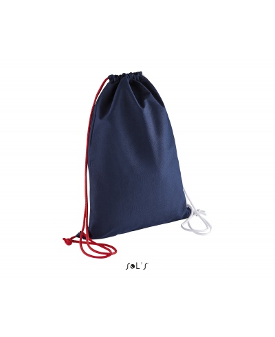 QUALITY: CANVAS 235, 100% cotton; Contrast adjustable drawstrings; Capacity: 7 Litres; Size: 33 x 45 cm