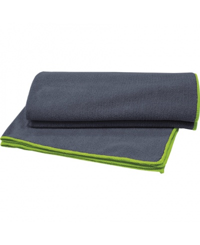 Bath and sport towel, overlocked with polyester filament to three yarns in same tone, except in colour dark lead (46) where ribs are in fluor yelow (221). Elastic trim for easy folding.