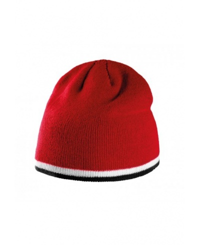 100% acrylic. Knitted beanie hat with contrast bi-colour bottom band.