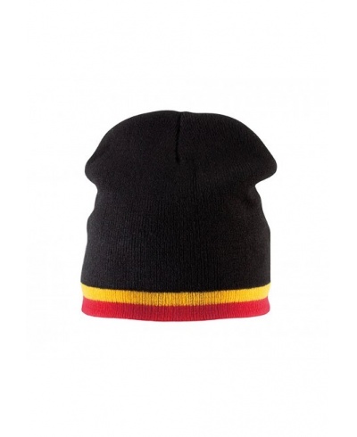 100% acrylic. Knitted beanie hat with contrast bi-colour bottom band.