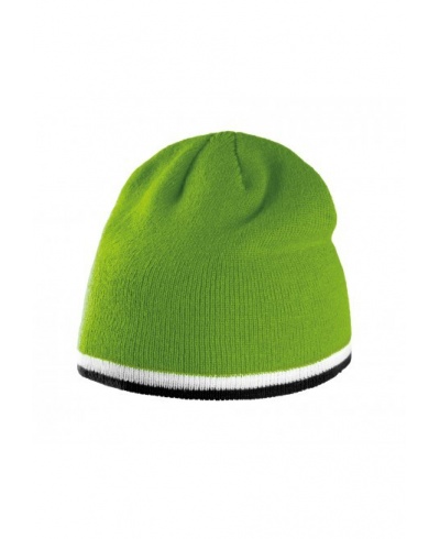 100% acrylic. Knitted beanie hat with contrast bi-colour bottom band.