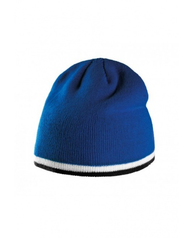 100% acrylic. Knitted beanie hat with contrast bi-colour bottom band.