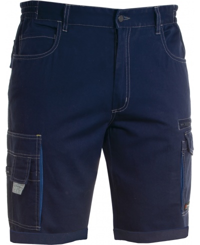 Bermuda shorts with side elastic and waist belt loops. Zip fastening with metal button, three jeans-style front pockets, one LOCK SYSTEM side pocket and one zip pocket, one multi-function pocket, two back pockets, one open and one with flap and Velcro. Contrasting inserts, reflective stripes on the back pocket