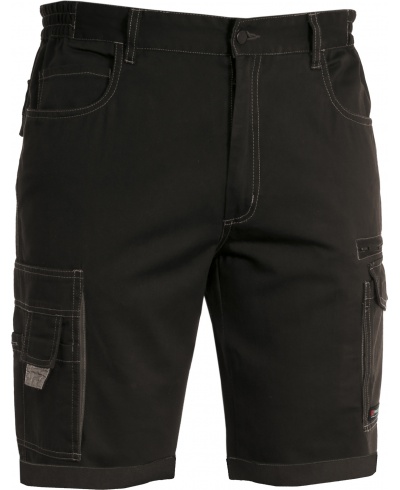 Bermuda shorts with side elastic and waist belt loops. Zip fastening with metal button, three jeans-style front pockets, one LOCK SYSTEM side pocket and one zip pocket, one multi-function pocket, two back pockets, one open and one with flap and Velcro. Contrasting inserts, reflective stripes on the back pocket