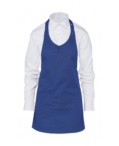This comfortable short bib apron has a V-neck style with press stud adjustable neckband is smart and functional thanks to its patch pocket, easy care poly-cotton fabric and great washability – 60° for all colours. It's a practical and durable choice.