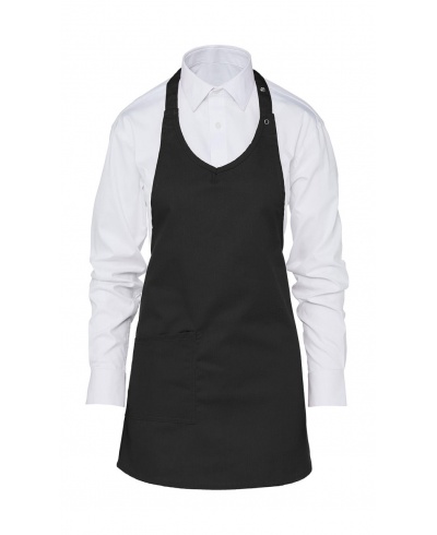 This comfortable short bib apron has a V-neck style with press stud adjustable neckband is smart and functional thanks to its patch pocket, easy care poly-cotton fabric and great washability – 60° for all colours. It's a practical and durable choice.